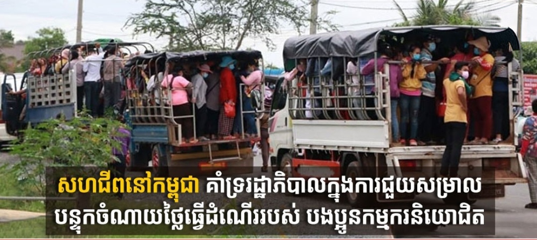 (ភ្នំពេញ)៖ សហជីពគ្រប់និន្នាការបង្ហាញការពេញចិត្ត និងគាំទ្ររាជរដ្ឋាភិបាល ដែលបានយកចិត្តទុកដាក់ក្នុងការជួយសម្រួលដល់បងប្អូន កម្មករនិយោជិតតាមរយៈការសម្រេចផ្តល់ប្រាក់សោហ៊ុយធ្វើដំណើរបណ្តោះអាសន្ន២,៥០ដុល្លារអាម៉េរិក ក្នុងមួយខែបន្ថែមលើប្រាក់សោហ៊ុយធ្វើដំណើរ និងស្នាក់នៅដែលសហគ្រាស ក្រុមហ៊ុន រោងចក្រកំពុងអនុវត្ត។