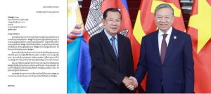 (ភ្នំពេញ)៖ សម្តេចតេជោ ហ៊ុន សែន ប្រមុខរដ្ឋស្តីទីនៃកម្ពុជា នៅថ្ងៃទី៧ ខែមេសា ឆ្នាំ២០២៦នេះ បានផ្ញើសារអបអរសាទរជូន លោក To Lam អគ្គលេខាធិការនៃគណៈកម្មាធិការមជ្ឈឹមបក្សកុម្មុយនីស្តវៀតណាម ដែលទើបត្រូវបានបោះឆ្នោតជ្រើសរើសជាប្រធានរដ្ឋ នៃសាធារណរដ្ឋសង្គមនិយមវៀតណាម។