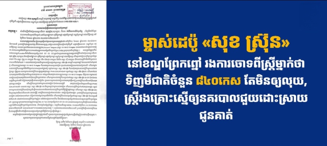 ក្រោយម្ចាស់ដេប៉ូ មិនព្រមទូទាត់លុយជូន, ម្ចាស់ទំនិញទាំង២នាក់ប្តី បានជិះរថយន្តធ្វើដំណើរទៅប៉ុស្តិ៍នគរបាលរដ្ឋបាលព្រែកព្នៅ ដើម្បីដាក់ពាក្យបណ្ដឹង។ ជនរងគ្រោះទាំង២នាក់ បានទទូចឲ្យនគរបាលខណ្ឌព្រែកព្នៅ ជួយដោះស្រាយជូនគាត់ផង។