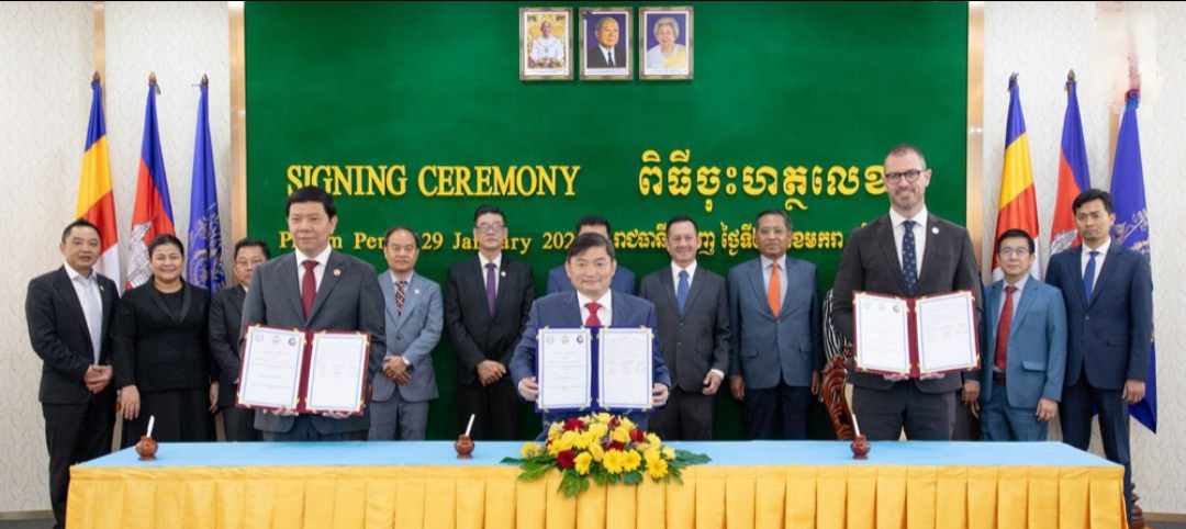 (ភ្នំពេញ)៖ លោក ហេង សួរ រដ្ឋមន្ត្រីក្រសួងការងារ និងបណ្ដុះបណ្ដាលវិជ្ជាជីវៈ លោក តាំង សិទ្ធី ប្រធានការិយាល័យតំណាងសភាពាណិជ្ជកម្មកម្ពុជា ប្រចាំទីក្រុងម៉ែលប៊ន និងលោក Jeremy Crawford នាយកប្រតិបត្តិសភាពាណិជ្ជកម្មប្រចាំទីក្រុងហ្គីឡុង នៃរដ្ឋវីតូរីយ៉ា ប្រទេសអូស្ត្រាលីបានចុះអនុស្សរណៈនៃការយោគយល់គ្នា (MoU)ស្តីពី «សហប្រតិបត្តិការនៅក្នុងការផ្លាស់ប្តូរជំនាញ ការបណ្ដុះបណ្ដាលសិស្សហ្វឹកហាត់ និងការហ្វឹកហាត់ការងារ» នាព្រឹកថ្ងៃទី២៩ ខែមករា ឆ្នាំ២០២៦ នាទីស្តីការក្រសួង។
